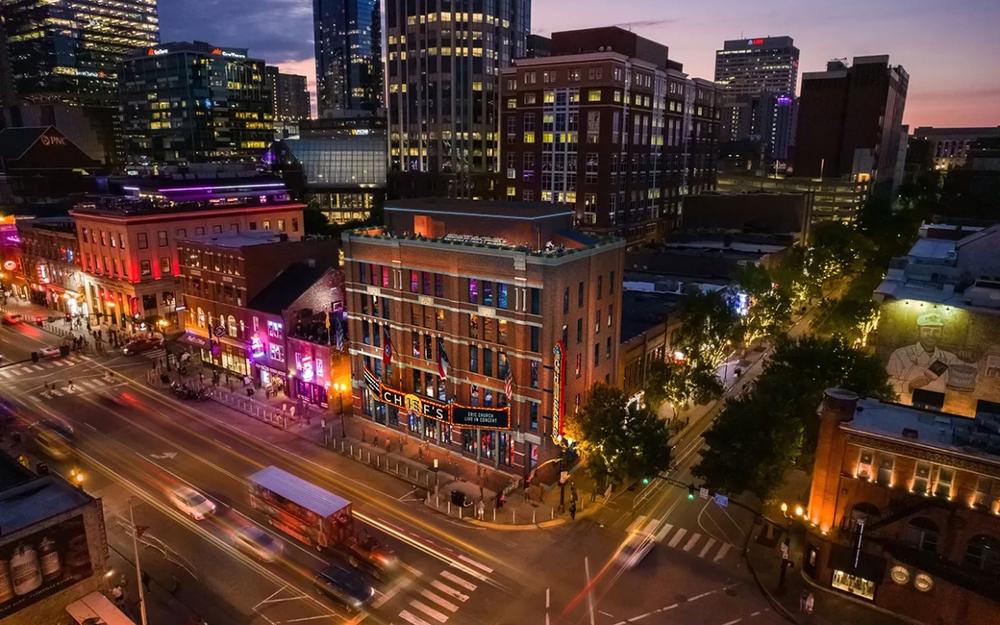 The building’s decor includes more than 3,000 concert posters from the span of Church’s career covering the ground floor of the building. As previously revealed, Chief’s will also honor Church’s Carolina roots via a partnership with James Beard award-winning pitmaster Rodney Scott, whose restaurant Rodney Scott’s Whole Hog BBQ will overlook downtown Nashville with its ‘Hell of a Q’ rooftop space.